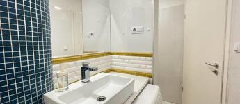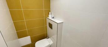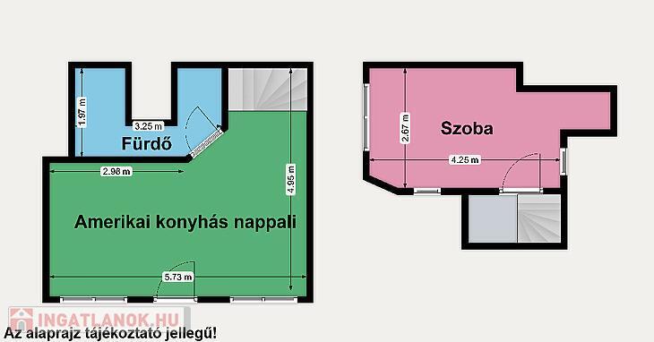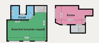 A lakás 480 cm-es belmagassága lehetővé tette egy stabil, tágas felső szint kialakítását, így a 25 m²-es alsó részhez egy 12 m²-es felsőrész is tartozik, amely által az összterület 37 m². A felső szinten kialakított szoba kényelmes hálóként vagy dolgozószobaként is használható, hiszen a belmagassága 224 cm, így teljes értékű térként funkcionál.