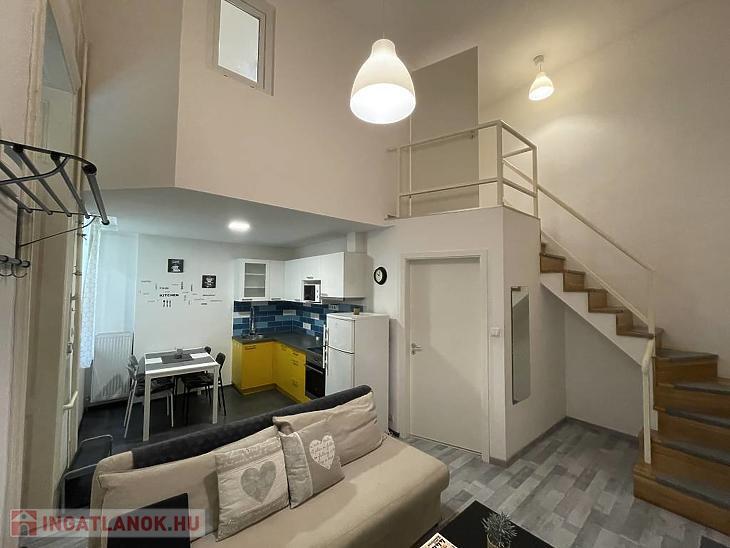 Eladó egy különleges hangulatú, belső kétszintes lakás Budapest 7. kerületében, a Jósika utcában.