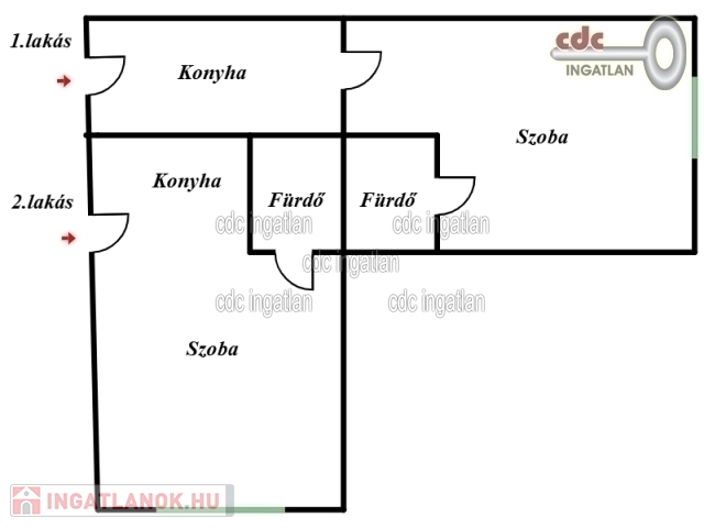 Az ingatlan egy 20 m2-es és egy 30 m2-es lakásból áll.
