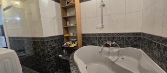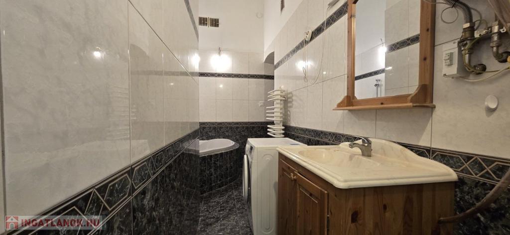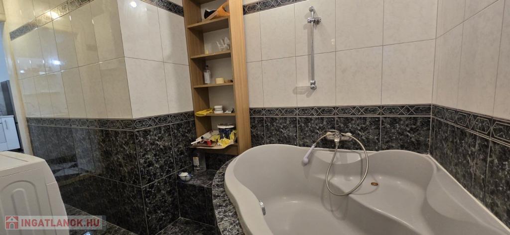 A sarokkádas fürdőszoba külön WC-vel komfortos érzetet biztosít a mindennapokra.