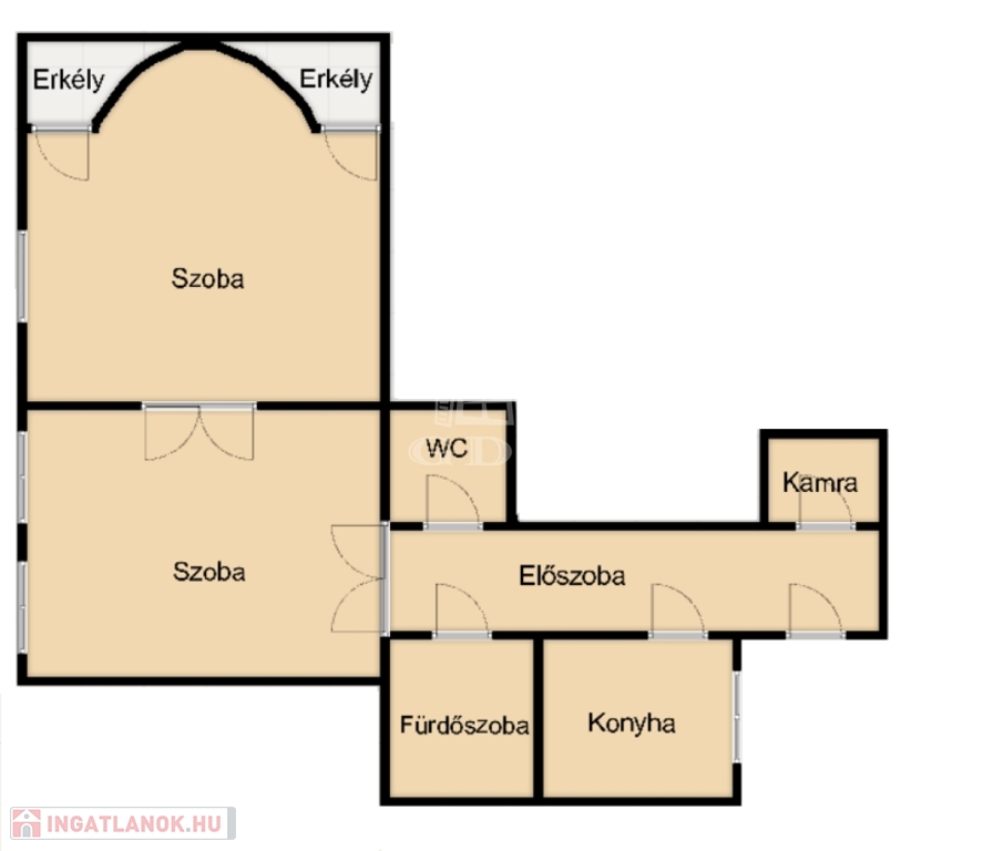 Az ingatlan jelenlegi kialakítása két szobából áll, azonban a kedvező alaprajznak köszönhetően akár három hálószobás elrendezés is könnyedén megvalósítható, így rugalmasan igazítható saját lakhatási vagy befektetési elképzelésekhez.