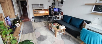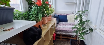 Hangulatos loggia, amely tökéletes pihenősarok – jelenleg tavaszi–nyári–őszi chill zónaként funkcionál, raklapággyal berendezve.