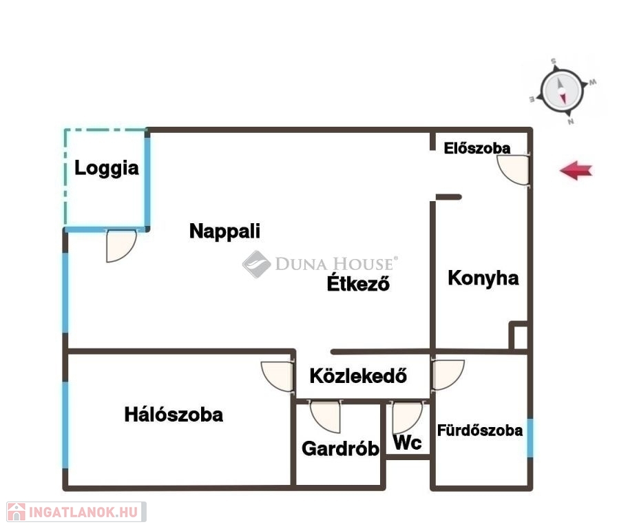 - 49/52 m2 (a loggia egy része be lett építve a napaliba)