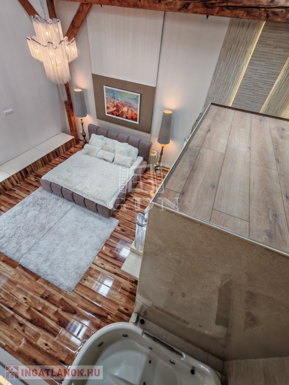 Az ingatlan éke amitől garantáltan el áll a lélegzete....a szint eltolással kialakított, 5 méteres belmagasságú hálószoba aminek a tetején ablakok vannak így akár ágyból is láthatjuk a csillagos eget vagy ébredhetünk arra,hogy a hasunkra süt a nap!