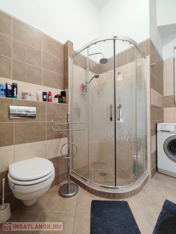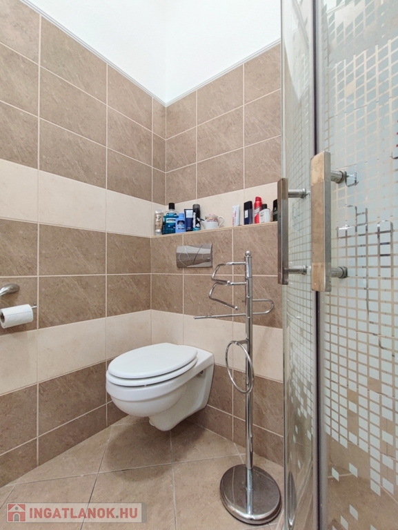 Fürdője ablakos, zuhanyzós, WC-vel.
