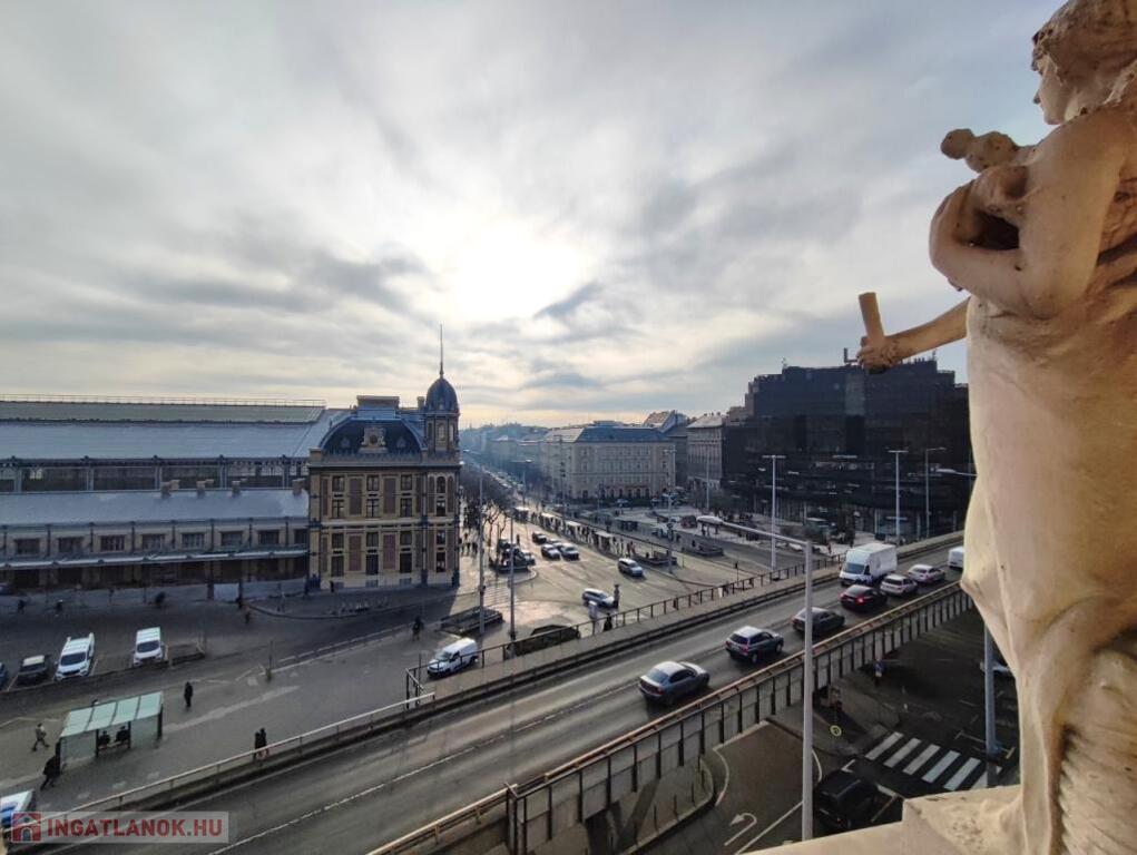 Eladó Budapest, XIII.ker. Nyugati téren - Budapest egyik fontos közlekedési csomópontjánál- rendezett, 4 szintes, jó lakóközösségű, liftes ház IV. emeletén, egy jó állapotú, 80 nm-es, 2 szobás, 2 tárolós, cirkó fűtéses, riasztós, összkomfortos lakás.