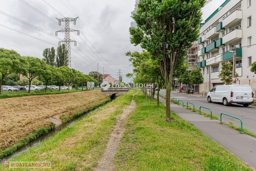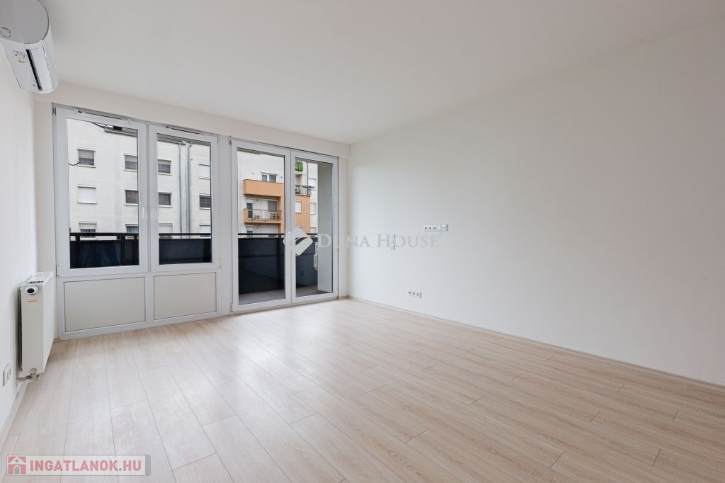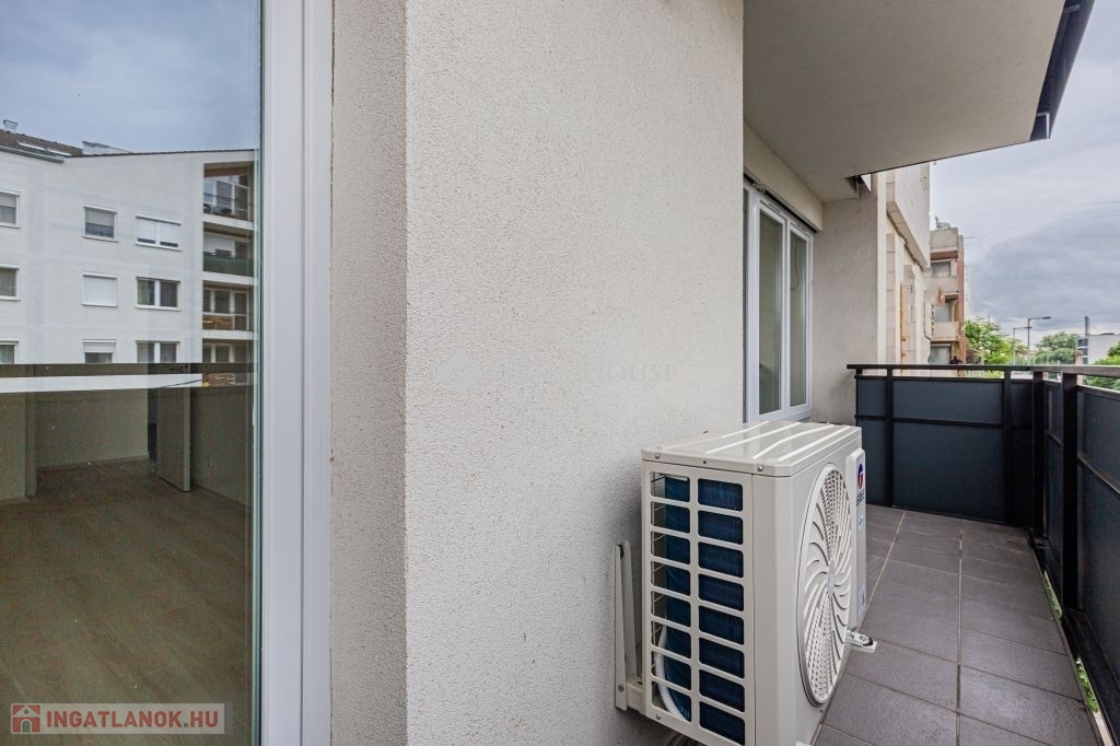 Újszerű erkélyes lakás Angyalföldön! Eladó egy 2. emeleten található , nappali + 2 hálószobával rendelkező, klimatizált lakás 8nm erkéllyel. Az ingatlanhoz tartozik:- 2 liftes autóbeálló: 6.9MFt + 6MFt értékben, valamint plusz egy beálló ingyenesen- 2 tároló: 5MFt + 4,3Mft értékben (6,22nm + 5,35nm), valamint egy plusz tároló 2,8nm ingyenesen.Exkluzív tervezésű 1.800m²-es parkosított belső díszkert játszótérrel.- Minden lakáshoz elegáns, porfestett acél francia erkélyes terasz- Biztonsági kaputelefon és térfigyelő kamerarendszer a lakópark területén és parkoló-, tárolószinteken- Gyorsliftek minden emeletre, még a parkoló és tárolók szintjére is- Légkondicionáló készülékekhez elektromos csatlakozási előkészítés- Exkluzív környezet mindössze 71 lakással- Szupermarket és orvosi rendelő a társasház közvetlen közelében- Kiváló hang- és hőszigetelő beton vázszerkezet. A városi előnyök mellett a természet élményét a közelben csörgedező Rákos-patak is fokozza, mely ideális helyszíne a természet- közeli kikapcsolódásnak egy kellemes séta, vagy éppen a napi kocogás helyszíneként. Ezenfelül a partján hatalmas alapterületű, gondozott kutyafuttatók is találhatóak. Elhelyezkedésének egyik fő előnye a kerületben található intézmények sokasága. A közelben számtalan bölcsőde, óvoda, iskola és egészségügyi intézmény található. A sportoláshoz ideális helyszín az Angyalföldi sportközpont, a Dagály Fürdő és a Palatinus Strand.A szórakozást keresőknek a közelben számos színház (József Attila Színház, Vígszínház), galéria és mozi kínál kikapcsolódást. A bevásárlásra pedig a környék szupermarketjei (Lidl, Aldi, Penny Market), a kisboltok, a Váci úti Tesco, a Duna Plaza, a Lehel téri piac és az Újpesti Városközponti üzletei nyújtanak megoldást. A kertvárosi hangulat mellett a környék tömegközlekedése is kiváló. A 14-es villamos Fiastyúk utcai megállója rövid sétányira, míg a 30, 32, 20E, 30A és 230 jelű buszok megállója is pár percnyire található. A lakópark ezen felül autóval is könnyedén megközelíthető