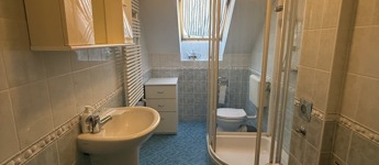 Kertre néző háló/dolgozószoba vagy vendégszoba, saját zuhanyzós fürdőszobával