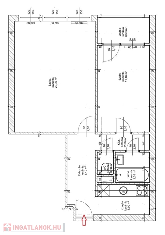 Konyha, külön WC, fürdőszoba, valamint két szoba, melyek közül a kisebbhez loggia kapcsolódik.