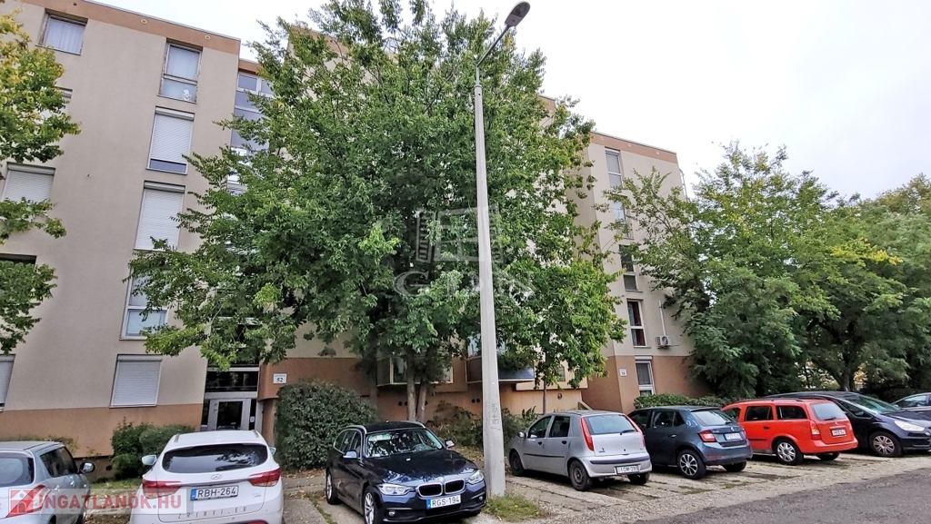 A nappali az Ady Endre út felé néz, a két hálószoba az épület mögötti csendes parkra.