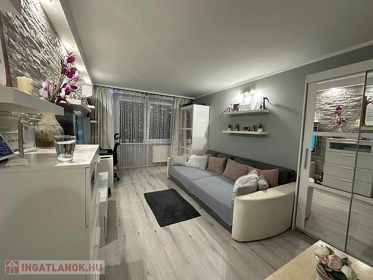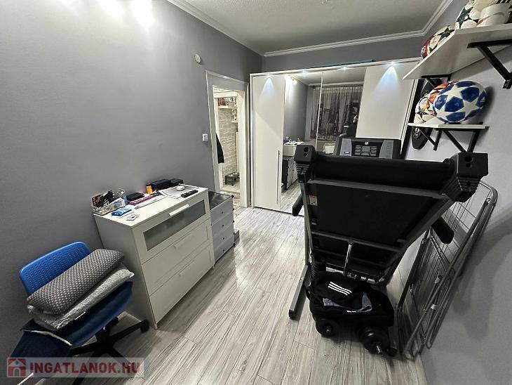 -A lakásban jó állapotú laminált parketta található minden helyiségben kivéve a konyhában, ott használtabb állapotú a parketta.