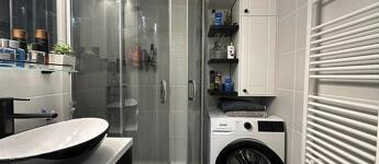 -A fürdőszoba burkolatai jó állapotúak, zuhanykabinnal felszerelt.