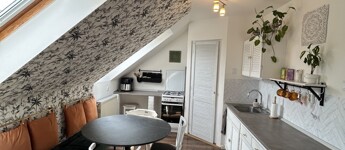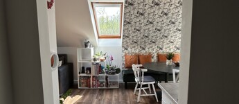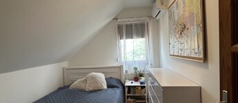 - 2001-es építésű, két lakószintből álló épület 1. emeletén, tetőtér jellegű elhelyezkedés