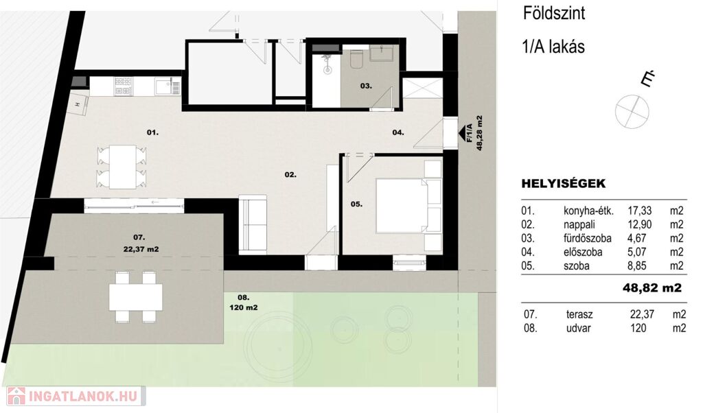 Ha olyan ingatlant keres, amely a város szívében, mégis csendes környezetben helyezkedik el, akkor ne keressen tovább! Ez a 48 m²-es, új építésű földszinti lakás, mely minden igényt kielégít. Az ingatlan egy háromszintes épület része, és egy különleges, 22 nm-es nagy terasszal, és 120 m²-es saját, kerítéssel lekerített telekkel rendelkezik, amely városszinten is nagyon ritkának és egyedinek számít!