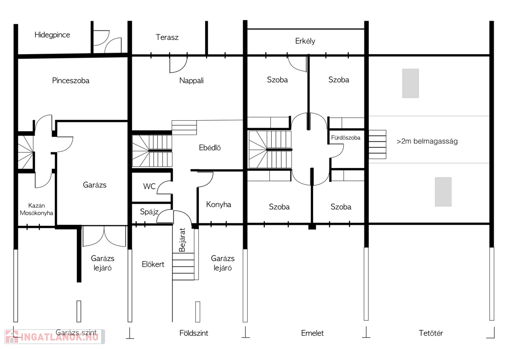 * 150 m² hasznos terület, sok helyiség, rugalmas elrendezés