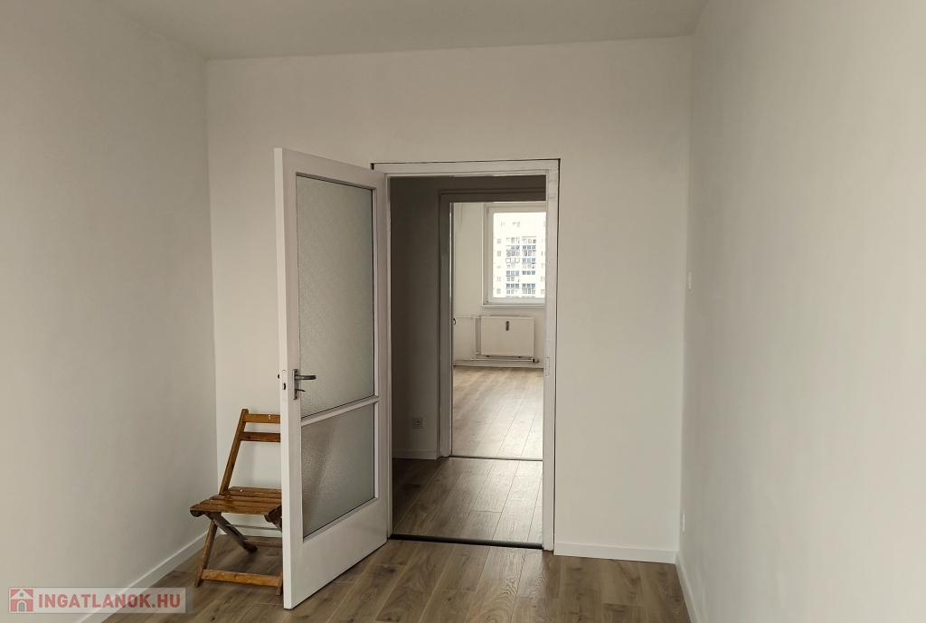 A lakás frissen felújított, világos és letisztult állapotban várja új gazdáját. A felújítás során megújult a villamos hálózat, az egész lakásban új burkolatok kerültek lefektetésre, a falak frissen kaptak festést, a konyhában pedig egy modern, gépesített konyhabútor (sütő, főzőlap, elszívó) található. Három külön nyíló szobája kiválóan bútorozható, a tágas érzetet keltő nappali erkéllyel kapcsolatos. Az elosztás praktikus: külön fürdőszoba és WC, valamint a két kisebb szoba között gardrób vagy beépített szekrény kialakítására nyílik lehetőség.