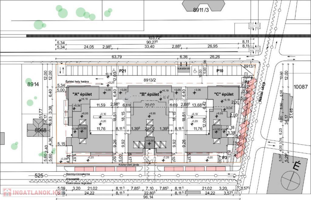 A B épület 3 szintes lesz. Földszintjén kertkapcsolatos lakások, 1. és 2. emeletén erkélyes lakásokat alakítanak ki..A tetőn közös napozó terasz lesz kialakítva.
