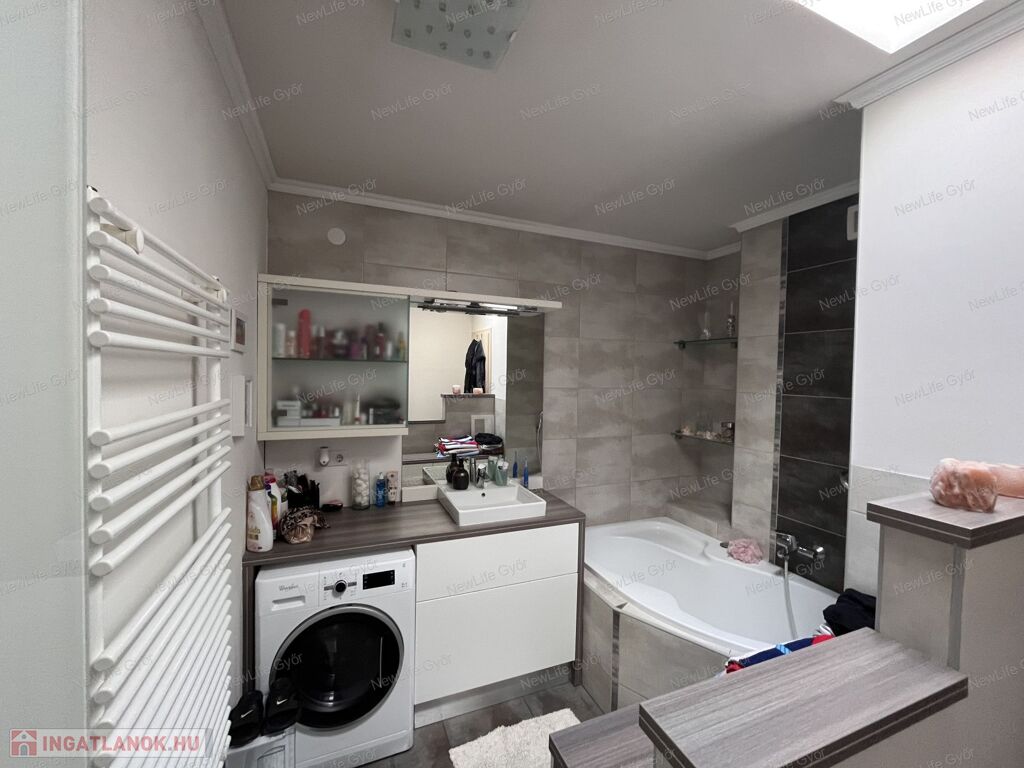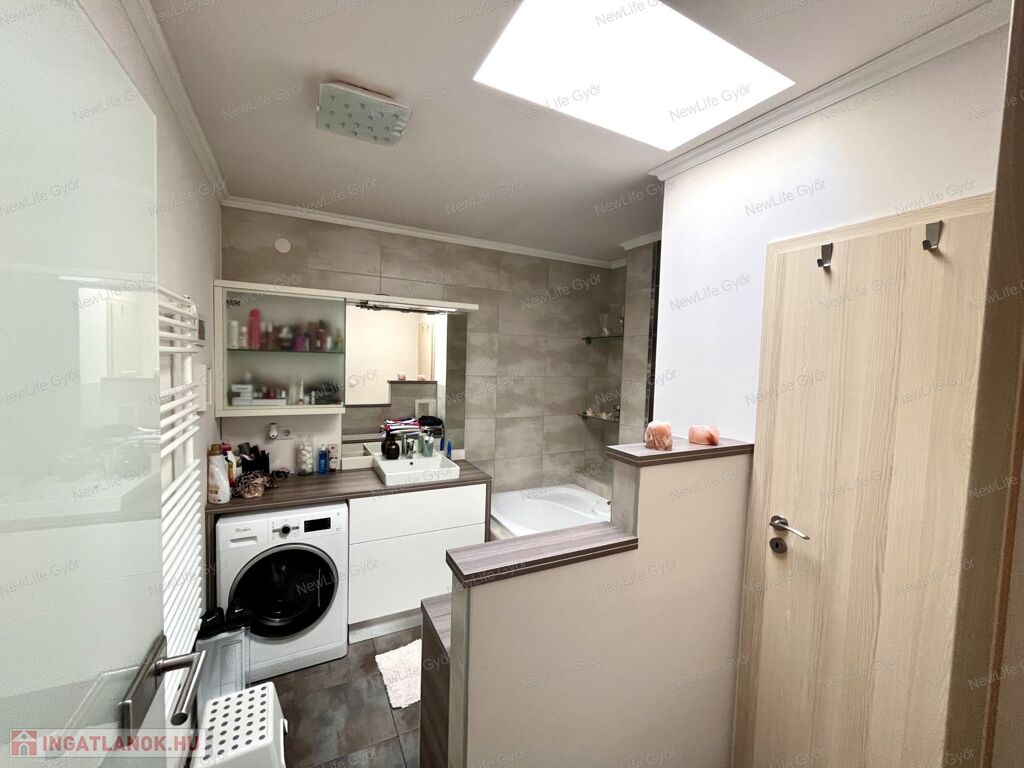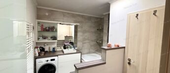 A fürdőszobába is egyedi bútorok kerültek (Concept Bútor Stúdió),mely által a fürdő modern, tágas és világos. A fürdőszobában a wc külön helységben,elszeparálva található.