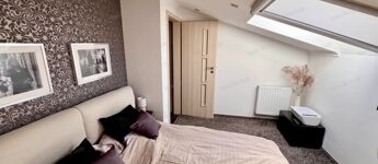 A nappaliból 3,5 szoba áll rendelkezésre. Mindhárom hálószoba jó méretű, kényelmesen berendezhető, míg a félszoba jelenleg gardróbként funkcionál, de akár könnyedén egy dolgozószoba is kialakíthó benne.