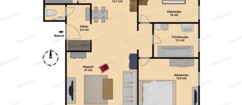 (Pontos méretei: 6,9 m X 4,2 m: 29m2, belmagasság: 2,1 m)