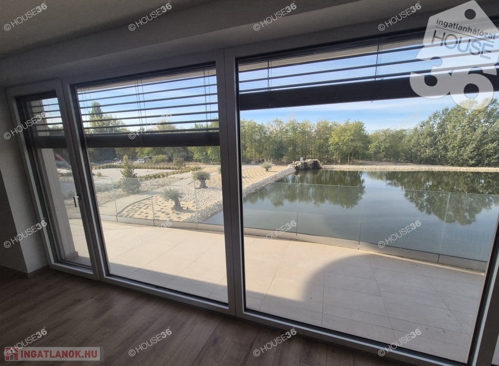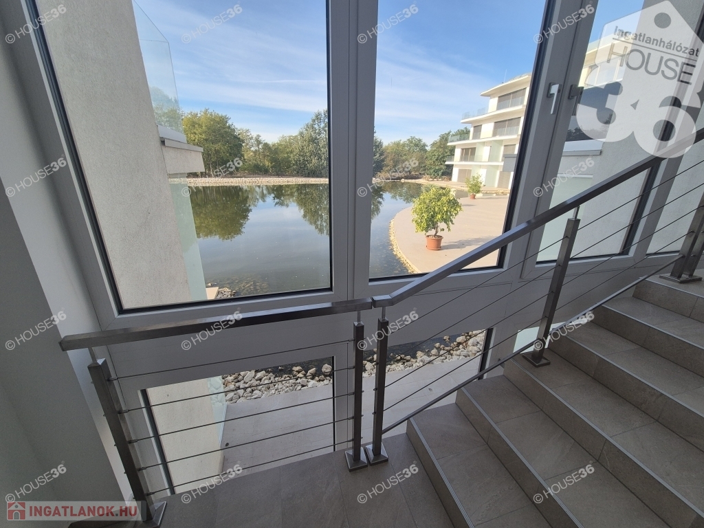 Biztonságos nyugodt környezetben, tóra néző rendkívüli panorámával rendelkező lakás, széles, hosszú üveglapos megoldású erkéllyel a zavartalan kilátásért.