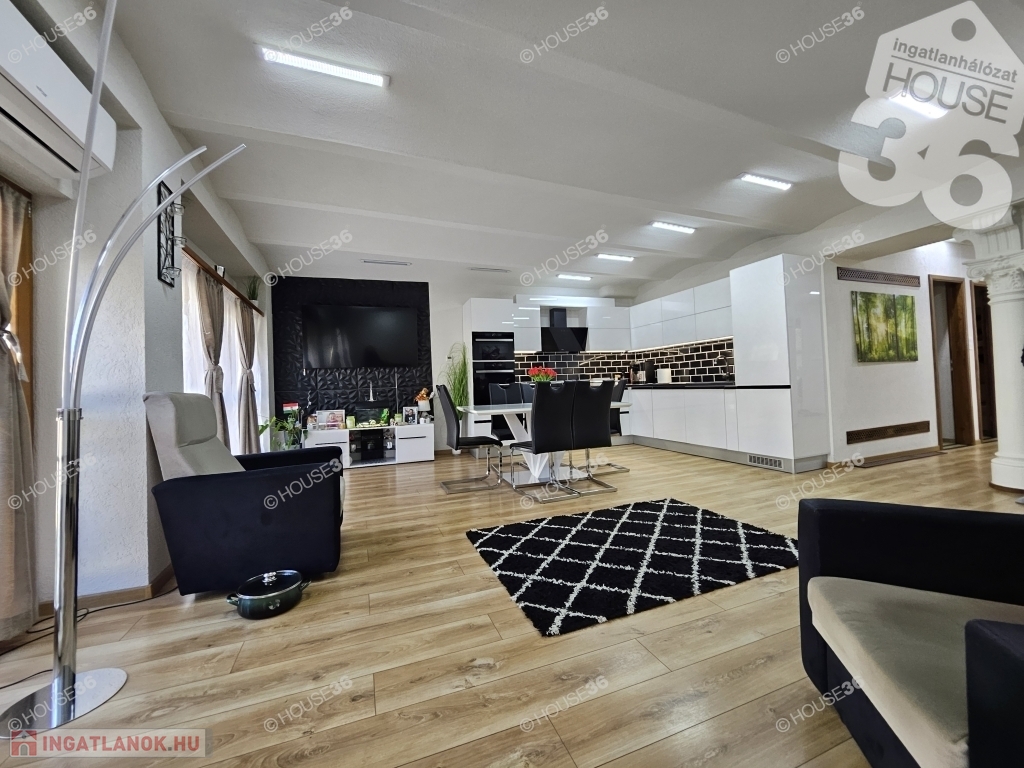 Kecskemét belvárosában, a Főtértől 3 perc sétára, polgári jellegű, körteraszos házban, I.em.-i, 86,68 m2-es, nappali + 2 szobás, újjáépített, igényesen felújított napfényes loft lakás eladó! Műemlék védett épület.
