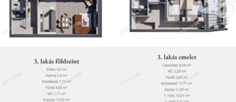3-as lakás, 2 szintes, 123,9 m2 + 2 terasz, 16,14 és egy 10,35m2-es. Nappali + 3 szoba, dupla fürdő.