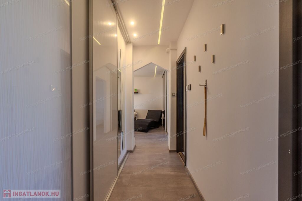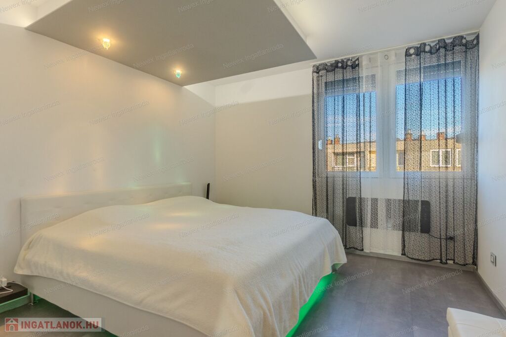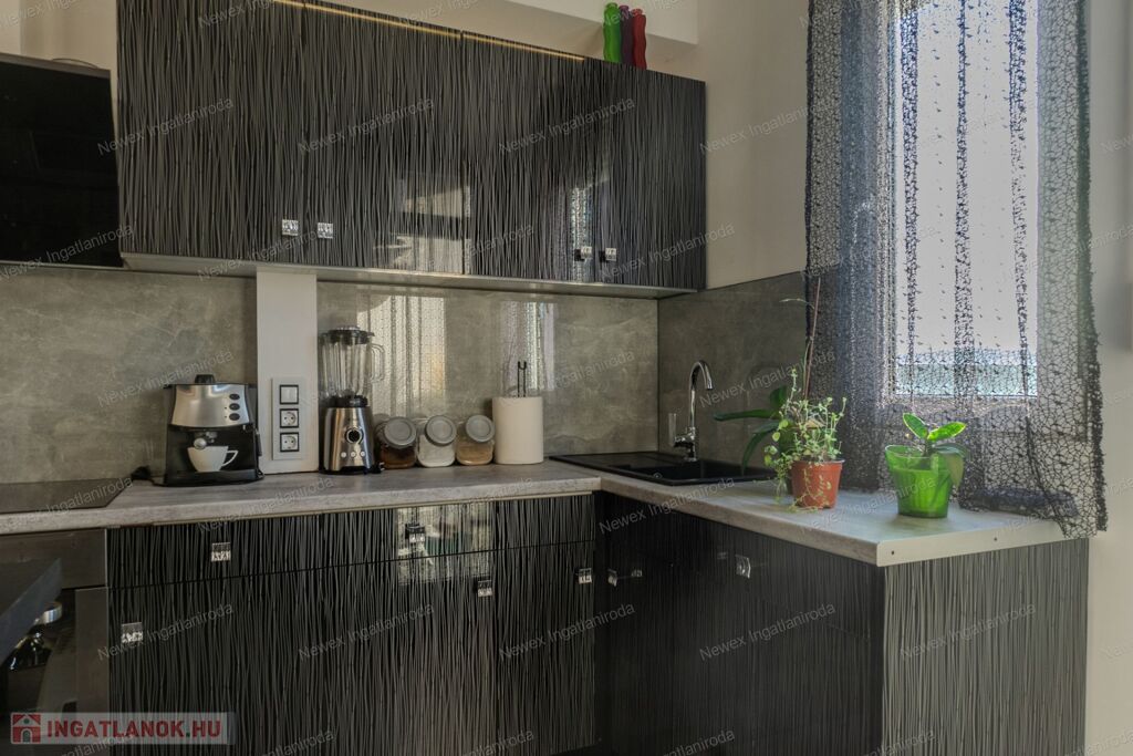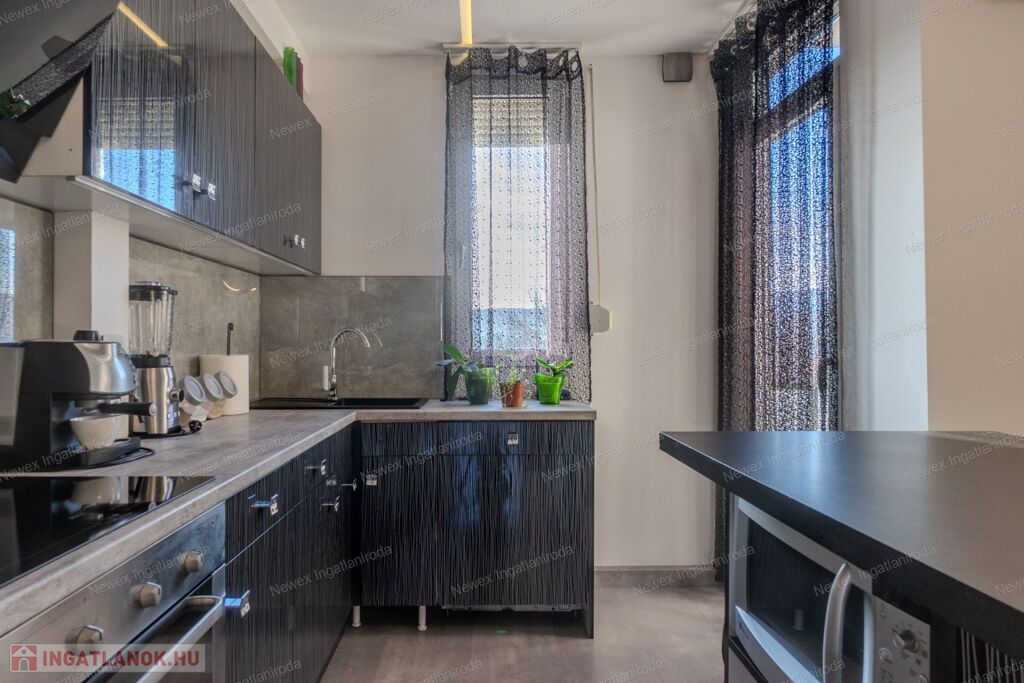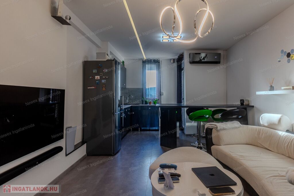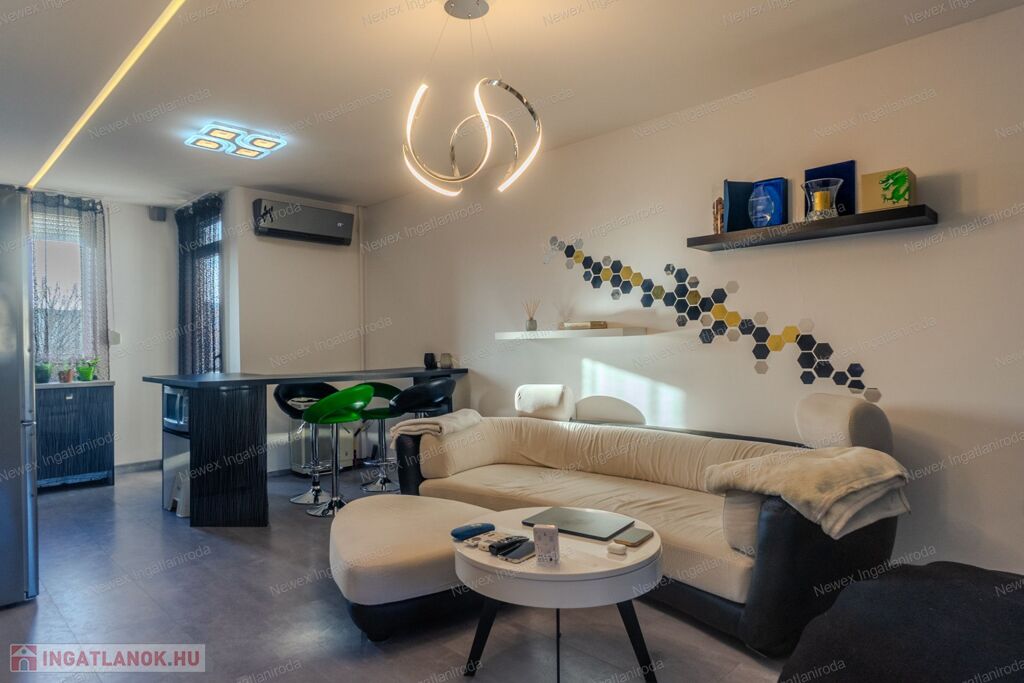 A lakásban 10 cm vastag szigetelt gipszkarton álmennyezet, felújított víz- és villanyhálózat, légkondicionáló és újonnan kialakított konyha található. A műanyag nyílászárók szigeteltek, redőnnyel és szúnyoghálóval ellátott.