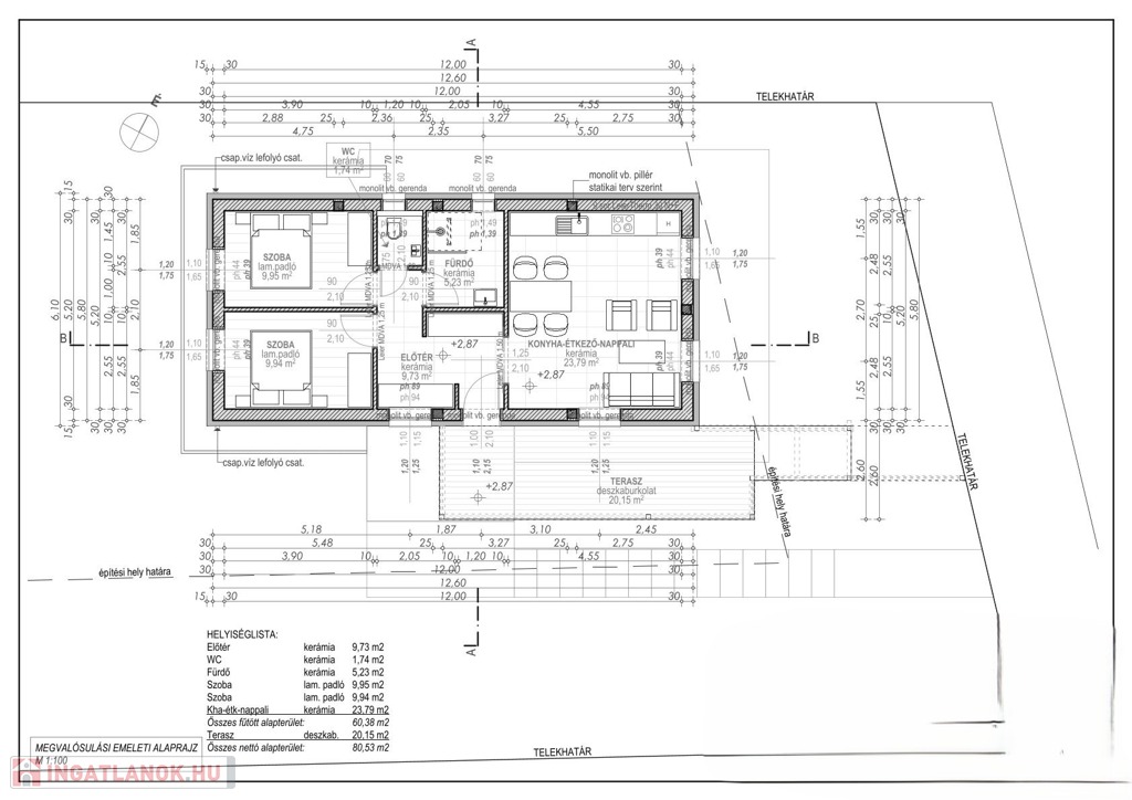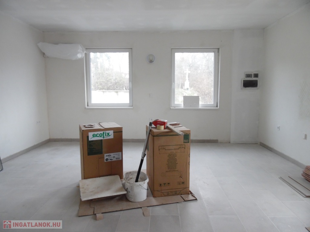 Zala megye, Nemesbük 65m2-es újépítésű lakás eladó. Hévíz fürdővárosának szomszédságában található kétszintes ingatlan földszintjén található lakásban 2 szoba, nappali, konyha, étkező, közlekedő, fürdőszoba és illemhelyiség kerül kialakításra. A 2025 első negyedévében elkészülő, légkondicionált lakás melegéről hőszivattyús fűtés gondoskodik. A kétszintes ingatlan egyben, vagy szintenként is megvásárolható. A két lakáshoz tartozó közel 1200m2-es telken a gépjárművek tárolására udvari beálló áll a tulajdonosok rendelkezésére.