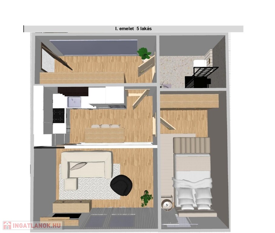 36,02 m2, 1 szoba + nappali, 5,7 m2-es erkély - 38,9 M Ft