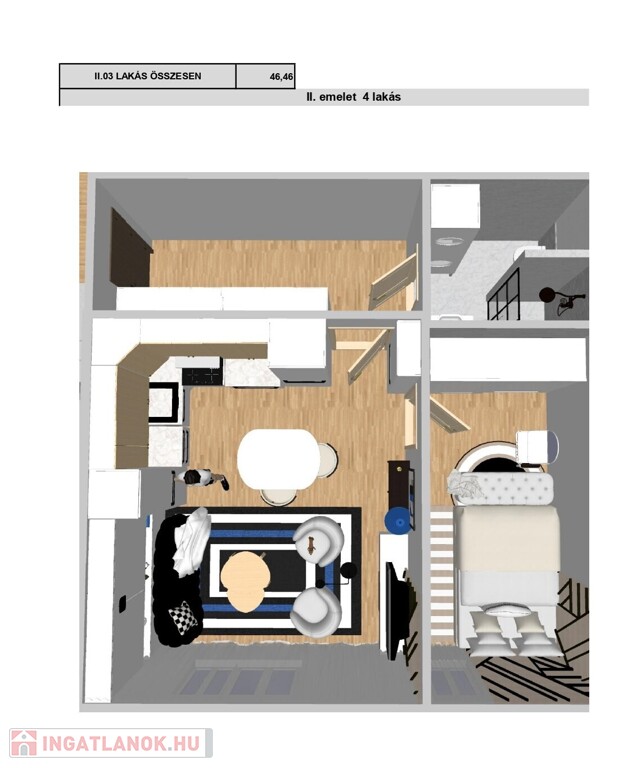 43,61 m2, 1 szoba + nappali, 5,7 m2-es erkély - 46,46 M Ft