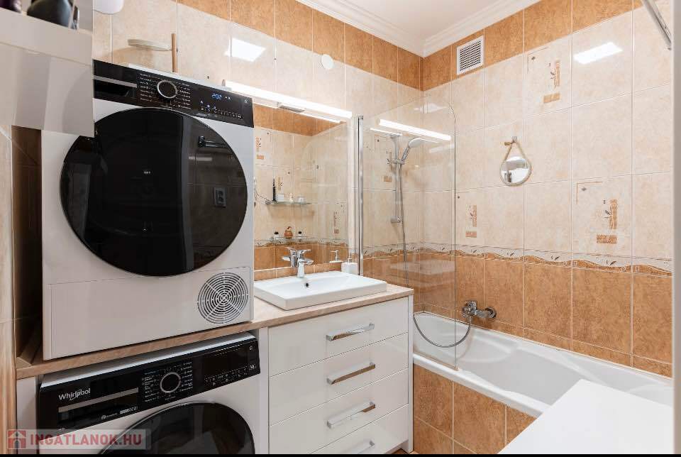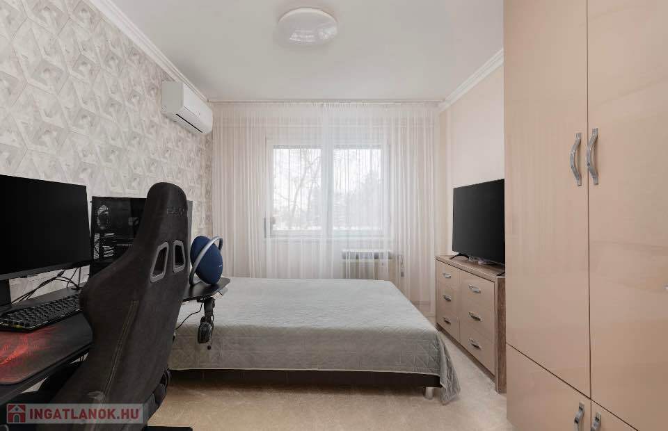 Az ingatlan szigetelt, tégla építésű, liftes társasház 3. emeletén található. Fűtése gázkonvektoros, emellett 2 klíma biztosítja a kellemes hőmérsékletet. Műanyag nyílászárókkal és redőnyökkel felszerelt. A burkolatok laminált padló és járólap. Közös tároló is tartozik hozzá.