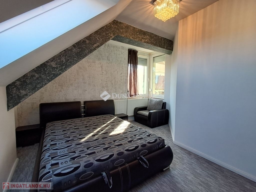 Eladó Pécs-Rózsadombon a Fáy András utcában 3 emeletes tégla építésű társasház legfelső szintjén egy átalakított, bruttó 70 m2-es (nettó 62 m2) erkélyes lakás, szigetelt épületben.Főbb jellemzők:-Kiválló állapotú műanyag nyílászárók-2+1 félszobás, nappali/amerikai konyhás, fürdő, wc elrendezés-Korszerű gázcirkó fűtésű, hűtő-fűtő klímával-Szúnyogháló/Redőnyökkel-Napellenző, áramkiállás az erkéllyen-Saját tároló-Gyönyörű Mecsekre néző panorámaAz ingatlan 1994-ben épült, karbantartott állapotú, a társasház rendezett, csendes lakóközösséggel rendelkezik, a parkolás az utcán díjmentesen megoldott. Az ingatlan infrastruktúrája kiváló: közelben található iskola, óvoda, üzletek, étterem, patika, buszmegálló, a belváros tömegközlekedéssel is gyorsan elérhető.Ideális választás fiatal pároknak, családoknak, vagy akár befektetésnek egyaránt.További információért, megtekintésért várom hívását!