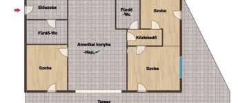 89 m2 alapterületű lakás, amerikai konyha-nappali+ 3 hálószoba+ 2 fürdőszoba elosztással