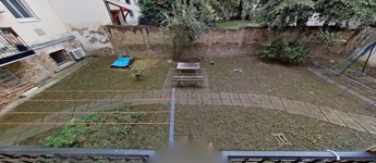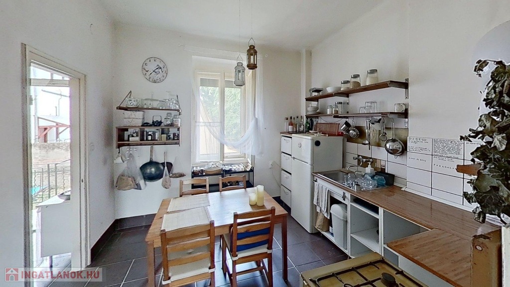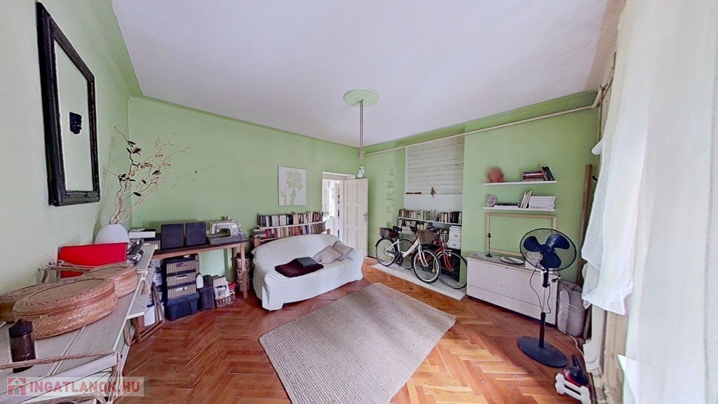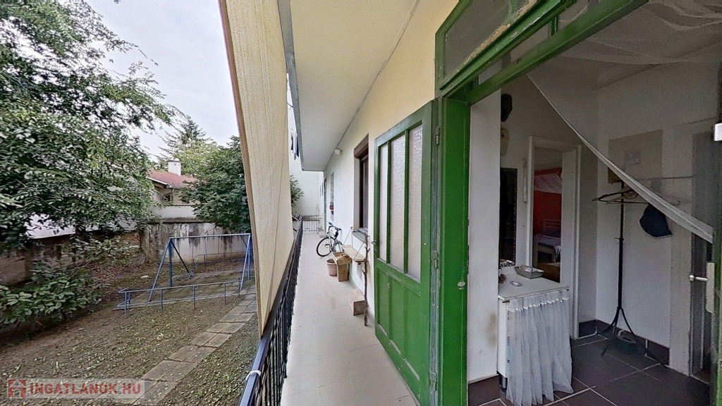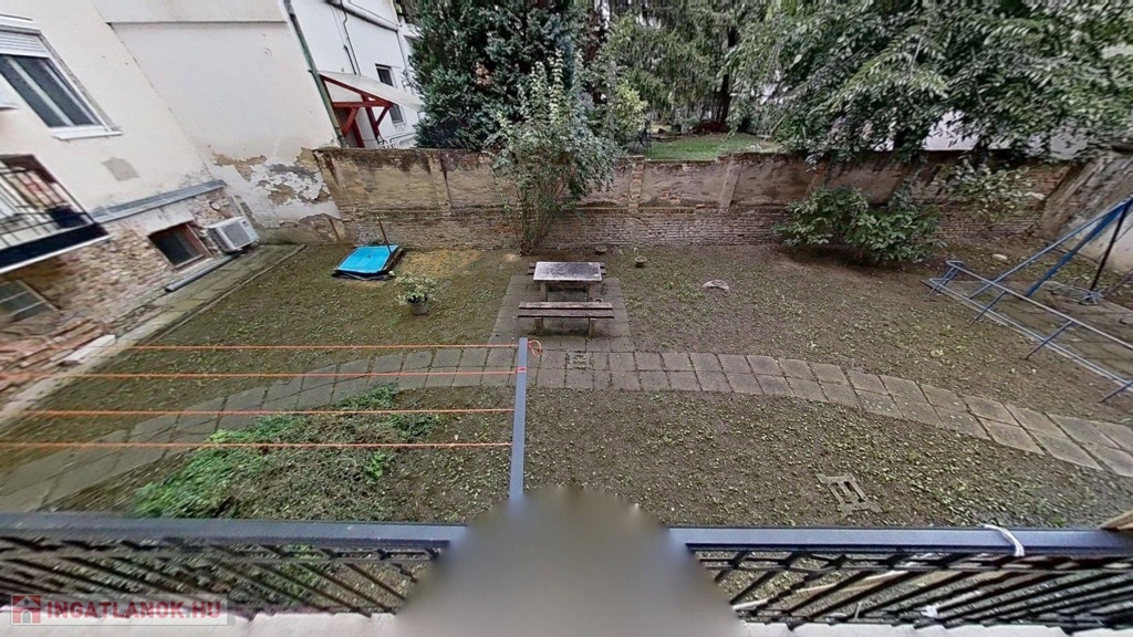A lakás egy szépen karbantartott, belső udvaros társasház magasföldszintjén található. A belső udvar rendezett, főleg gyerekek számára értékes terület, homokozóval, hintákkal, zöld felületekkel.