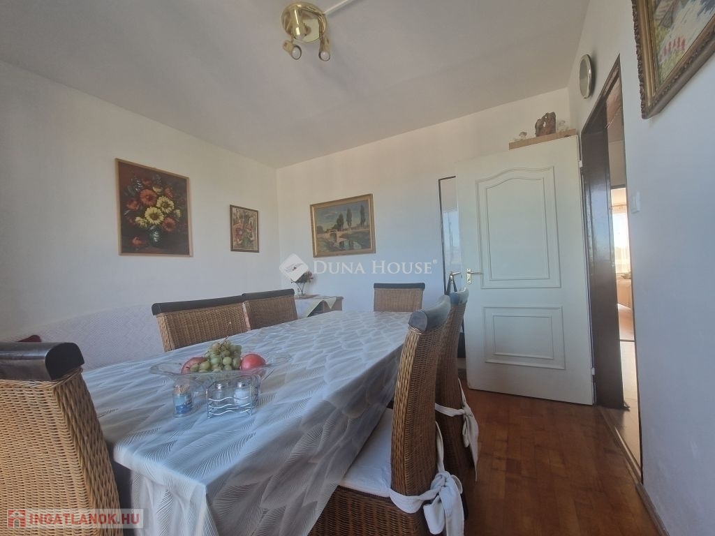 Eladásra kínálunk egy örök panorámás, napfényes 3 szobás, erkélyes lakást Pécs kertváros szívében!Az ingatlan 10 emeletes panel épületének 7. emeletén helyezkedik el, ahonnan lenyűgöző panorámás kilátás nyílik a Tv-toronyra és a Mecsekre.A 63 m2 -es lakás jellemzője a világos és barátságos hangulat, amit a napfényes helyiségek és a modern műanyag nyílászárók erősítenek, melyeket 2023-ban a lakásban és a lépcsőházban is cseréltek. Három különálló szoba praktikus elhelyezéssel, valamint különálló bidés WC és fürdőszoba található az ingatlanban.Távfűtés egyedi mérővel és a hideg-meleg víz egyedi órával történő mérésével a rezsi költségek könnyen kontrollálhatóvá válnak. Emellett a panelprogram keretein belül az épületet kívülről szigetelték, ami a lakás energia hatékonyságát növeli . 2021-ben az egész lépcsőházban és valamennyi lakásban a villamos hálózat cseréje történt.Az épület rendelkezik elektronikusan felújított hívó lifttel, így a mindennapokban is kényelmes és gyors a közlekedés a lakószintek között. A lépcsőházban heti kétszeri takarítás biztosítja a tisztaságot.Az ingatlan nem csupán a belső értékeivel, hanem kivételes elhelyezkedésével is büszkélkedhet. Pécs kertvárosának szívében található, ahol a zöldövezeti környezet nyugalmat biztosít az itt élők számára. Az örök panoráma garantálja, hogy minden nap kellemes látványban legyen része a lakóknak.Pécs városa rengeteg lehetőséget kínál mind azok számára, akik itt kívánnak élni. A kulturális élet gazdag, számos múzeummal, galériával és eseménnyel várja az érdeklődőket. A város pezsgő közéleti és kulturális eseményei, valamint a csodálatos természeti környezete mind hozzájárulnak ahhoz, hogy Pécs kiváló választás legyen bárki számára, aki nyugodt, de tartalmas életre vágyik.Kiváló elhelyezkedés :Pécs Pláza, boltok, piac, óvodák, iskolák, közintézmények a közelben. Kitűnő tömegközlekedés. Az ingatlan tehermentes,rövid időn belül birtokba vehető.Ne hagyja ki ezt a ritka lehetőséget, hogy egy örök panorámás, kivételes ingatlan tulajdonosa lehessen Pécs kertvárosában!
