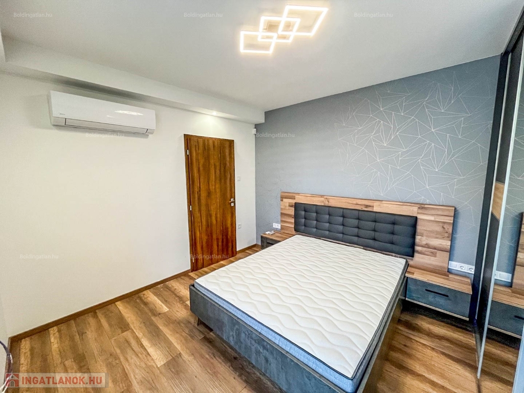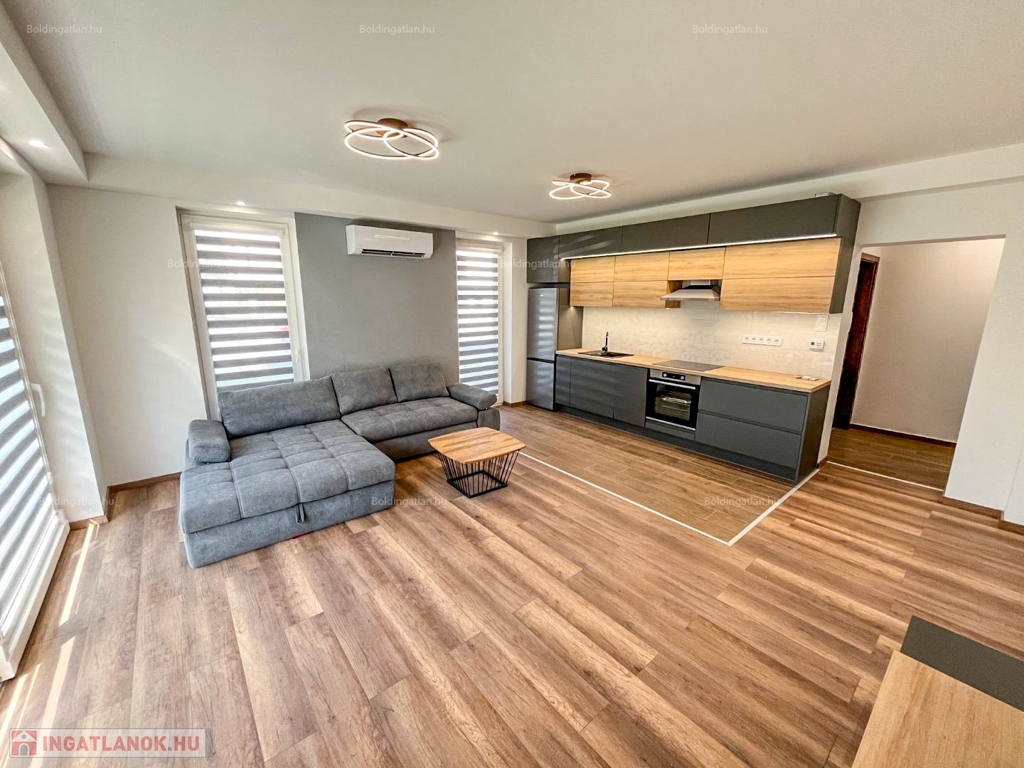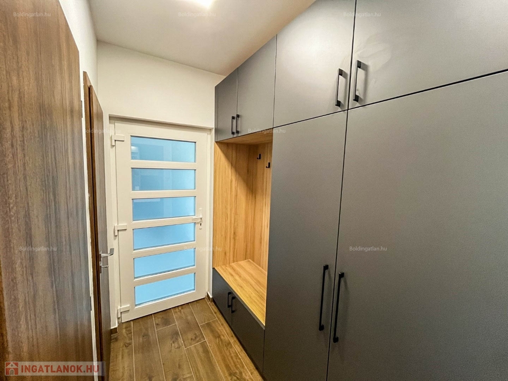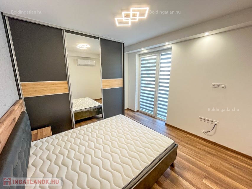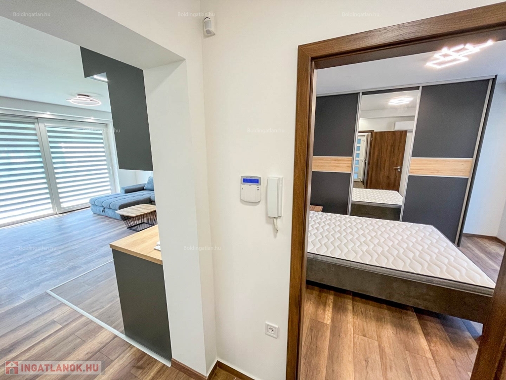 Siófok kertvárosában, Sóstón - a Balaton parttól csupán 15 perc kényelmes séta távolságra, az autópálya lehajtótól és a belvárostól autóval néhány percre - igényes környezetben lévő, magas minősében kivitelezett új építésű 6 lakásos társasház földszintjén 53 m2-es - azonnal költözhető - modern lakás a képeken látható berendezéssel együtt eladó. A lakásban nappali-konyha-terasz, 1 szoba, közlekedő, fürdőszoba, wc helyiségek kerültek kialakításra. A lakás fűtése hőszivattyúval - padlófűtéssel - megoldott, a melegvizet intelligens Ariston bojler szolgáltatja, valamint 2 db légkondicionáló, automata redőnyök, és riasztó is felszerelésre kerültek. Továbbá tartozik hozzá 40 m2-es udvari rész és 1 személyautó részére kialakított parkolóhely is. A társasházon napelem van felszerelve, erről üzemelnek a lakásonkénti hőszivattyúk, az elektromos fogyasztók és a medencéje (3mx5mx,1,5m).