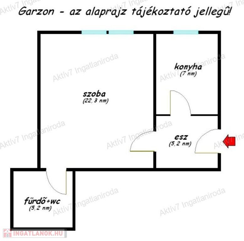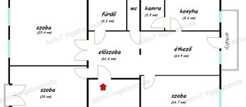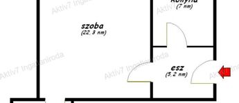 - Egy nagy méretű szoba és egy tágas konyha: a konyha akár szobává alakítható, így amerikai konyhás nappali + egy külön szoba is kialakítható.