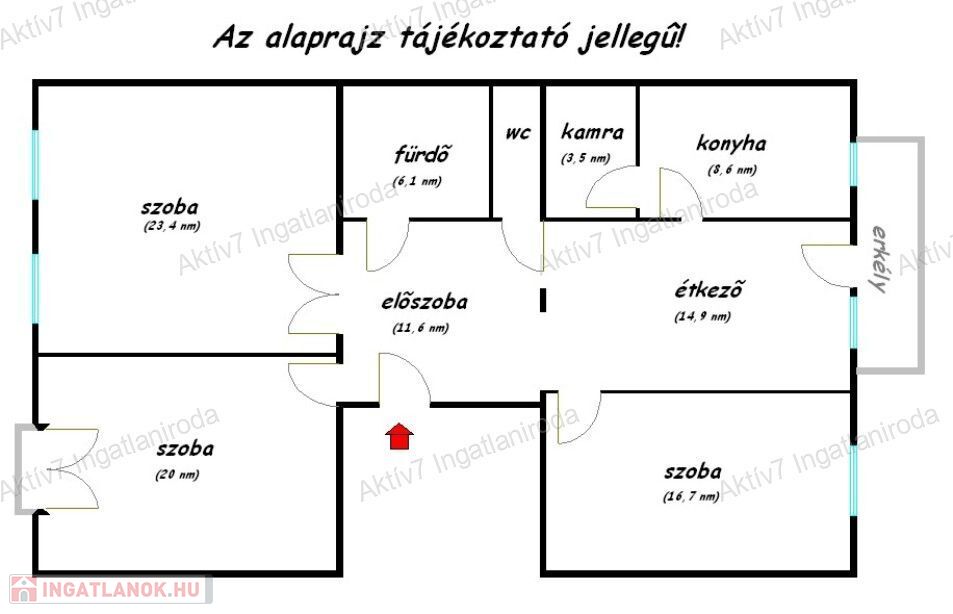 A tájékoztatás nem teljeskörű. A fotók széles látószögű géppel készültek, a helyiségek várható méretéről a leírás és / vagy az alaprajz nyújt tájékoztatást.