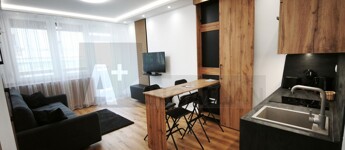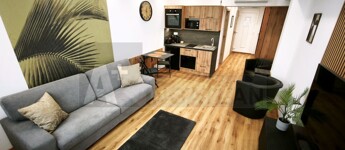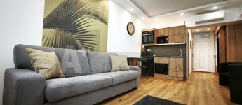 - 33 m²-es apartman: amerikai konyhás nappali + külön fürdő és WC + erkély