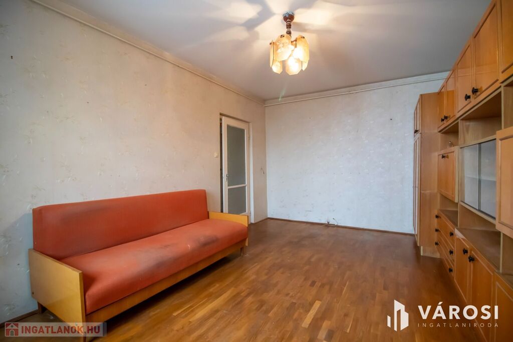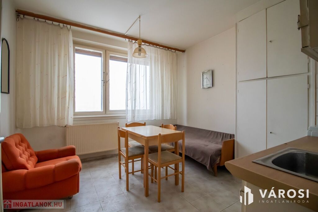 Egyedülállónak vagy párnak, estleg befektetésnek is ideális ez az felújításra szoruló, belvárosban lévő, 2 szobássá alakítható, de jelenleg 1 szoba + nagy konyhás, eladó panellakás, amely egy liftes ház 9. emeletén helyezkedik el.