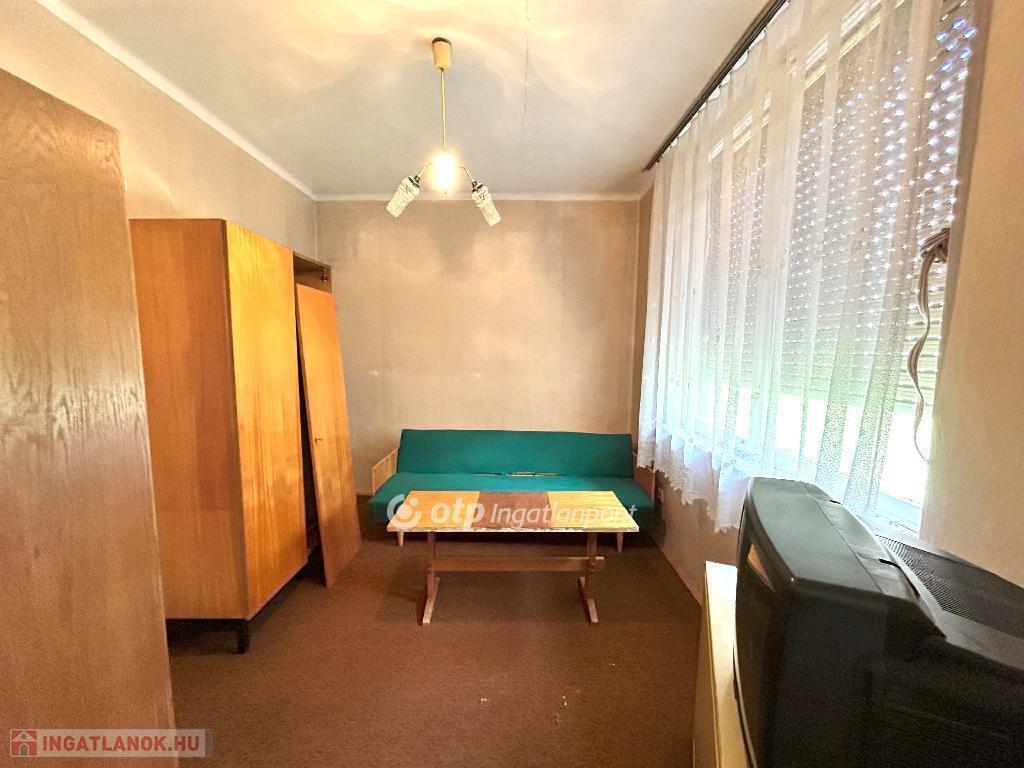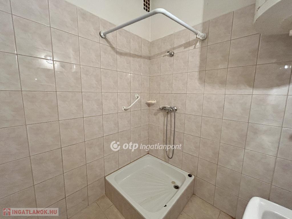 A lakás belső tere felújítást igényel, ugyanakkor a fürdőszoba már korszerűsítve lett: új csempeburkolattal és zuhanytálcás kialakítással rendelkezik. A WC külön helyiségben található. Az előszobában egy beépített szekrény biztosít praktikus tárolási lehetőséget, amely ugyan a régebbi évek stílusát idézi, de jól használható. Az ablakok a kertre néznek, így az ingatlan nem utcafrontra nyílik, ami kellemesen csendes környezetet biztosít.