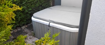 - nappaliból léphetünk a D-i tájolású teraszra, ill. a kertbe, aholegy jakuzzi is található