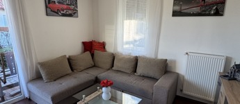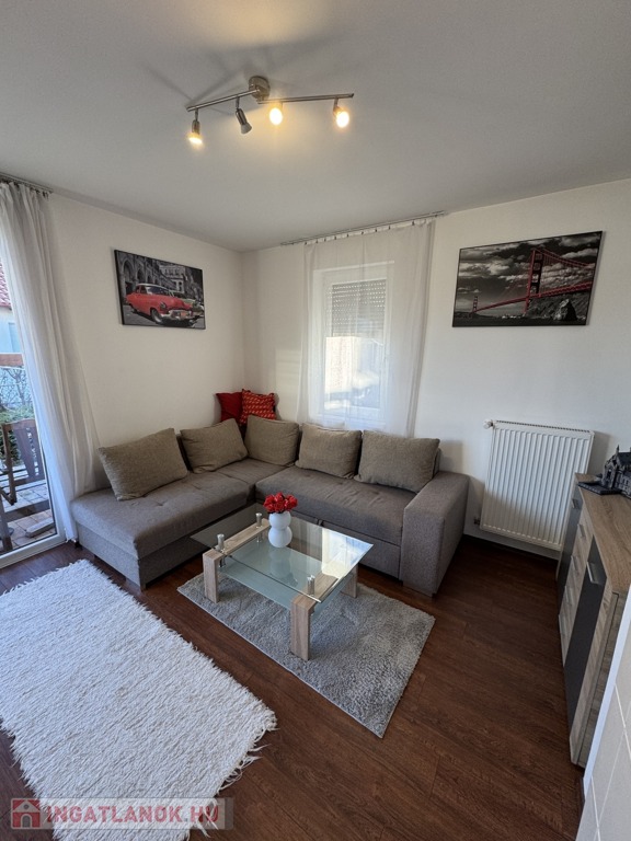 - ikerház külön bejáratú alsó szintjén helyezkedik el, kizárólagos kert használattal