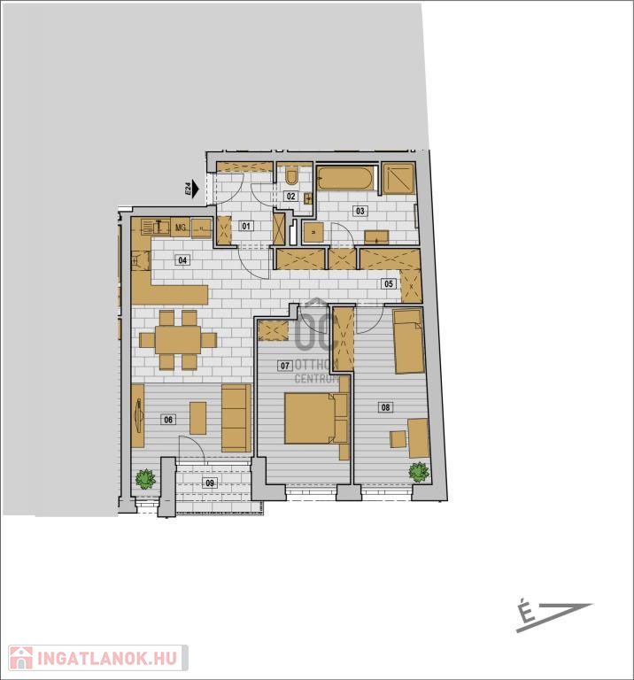 - utcafronti francia erkélyes és kertre néző nagy terasszal rendelkező lakások