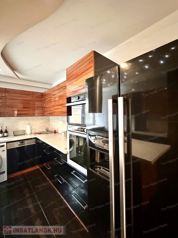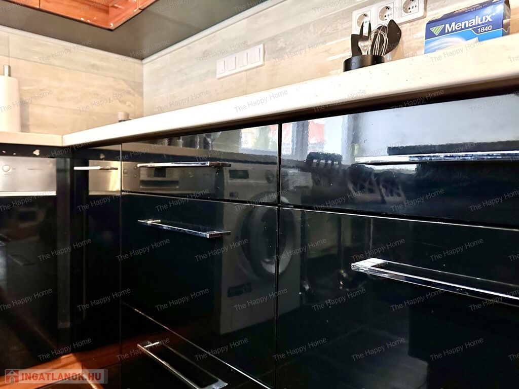 - Gépesített konyha: elektromos sütő, főzőlap, mikrohullámú sütő, páraelszívó, mosogatógép