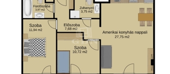 66 m²-es területével és 3 külön szobájával kiváló választás kisebb családok vagy párok számára.