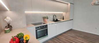 Jó ízléssel válogatott burkolatok, kiváló minőségű konyha jellemzi az ingatlant, amely teljesen gépesített: hűtőszekrény, mosógép, mosogatógép és minden szükséges beépített eszköz rendelkezésre áll.