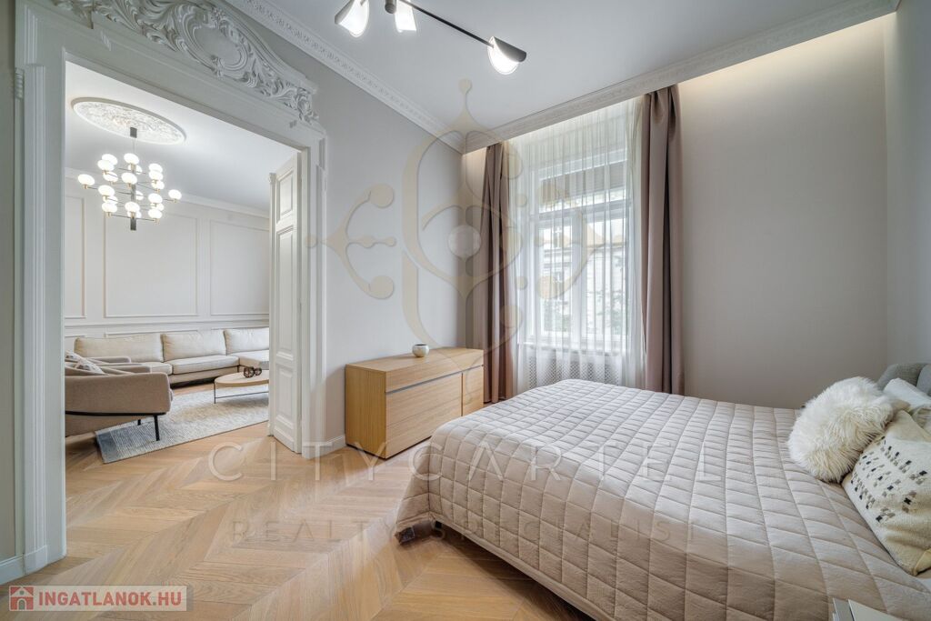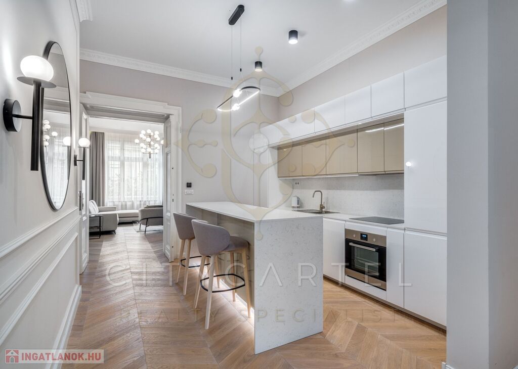 Budapest egyik legkeresettebb, történelmi belvárosi utcájában kínáljuk bérbeadásra ezt a 105 nm-es, teljes körűen felújított, luxus kivitelű lakást, amely minden részletében az igényességet és az időtálló eleganciát képviseli.