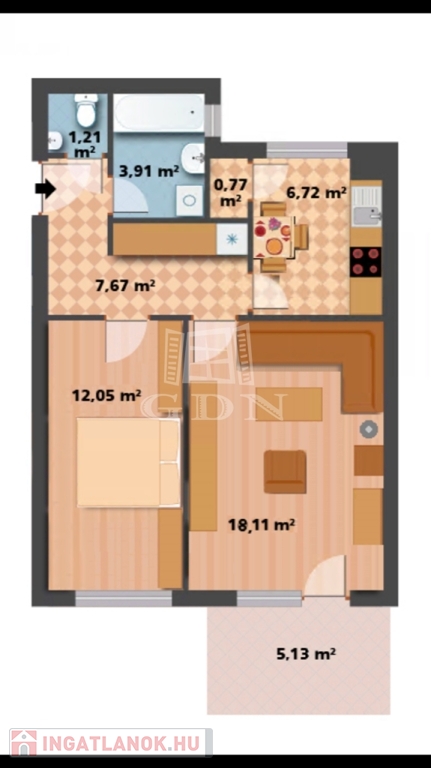 Az ingatlan két különnyíló szobával rendelkezik, melyek kiválóan alkalmasak nappalinak, hálószobának vagy akár dolgozószobának is – igény szerint alakítható. A lakás egyik ékköve a 5 m²-es erkély, ahonnan panorámás kilátás nyílik a környékre – tökéletes helyszín a reggeli kávéhoz vagy egy esti pihenéshez.